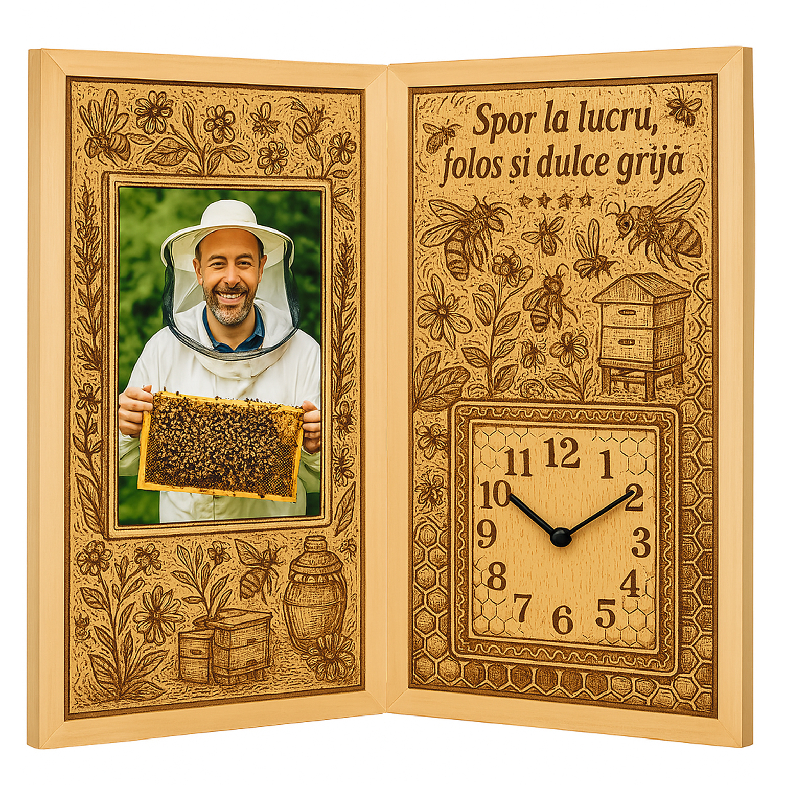 Carte din Lemn Personalizată cu Ceas – Cadou Unic pentru Apicultor