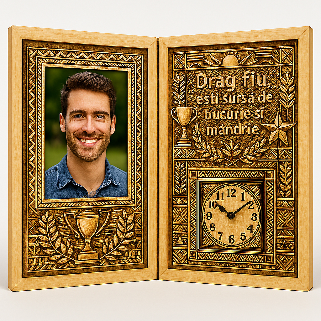 Tablou Personalizat Carte din Lemn cu Ceas – Cadou Unic pentru Fiu