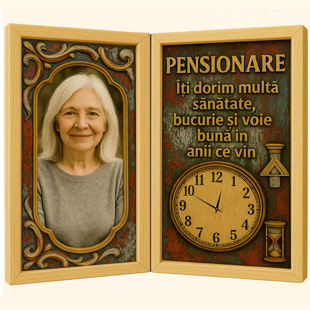 Acest tablou din lemn, lucrat manual în formă de carte , este un cadou emoționant și simbolic pentru momentul pensionării – un gest sincer de apreciere pentru o carieră trăită cu implicare, muncă și pasiune. Este mai mult decât un obiect decorativ: este o amintire vie a impactului lăsat în urmă și o celebrare a timpului dăruit celorlalți.