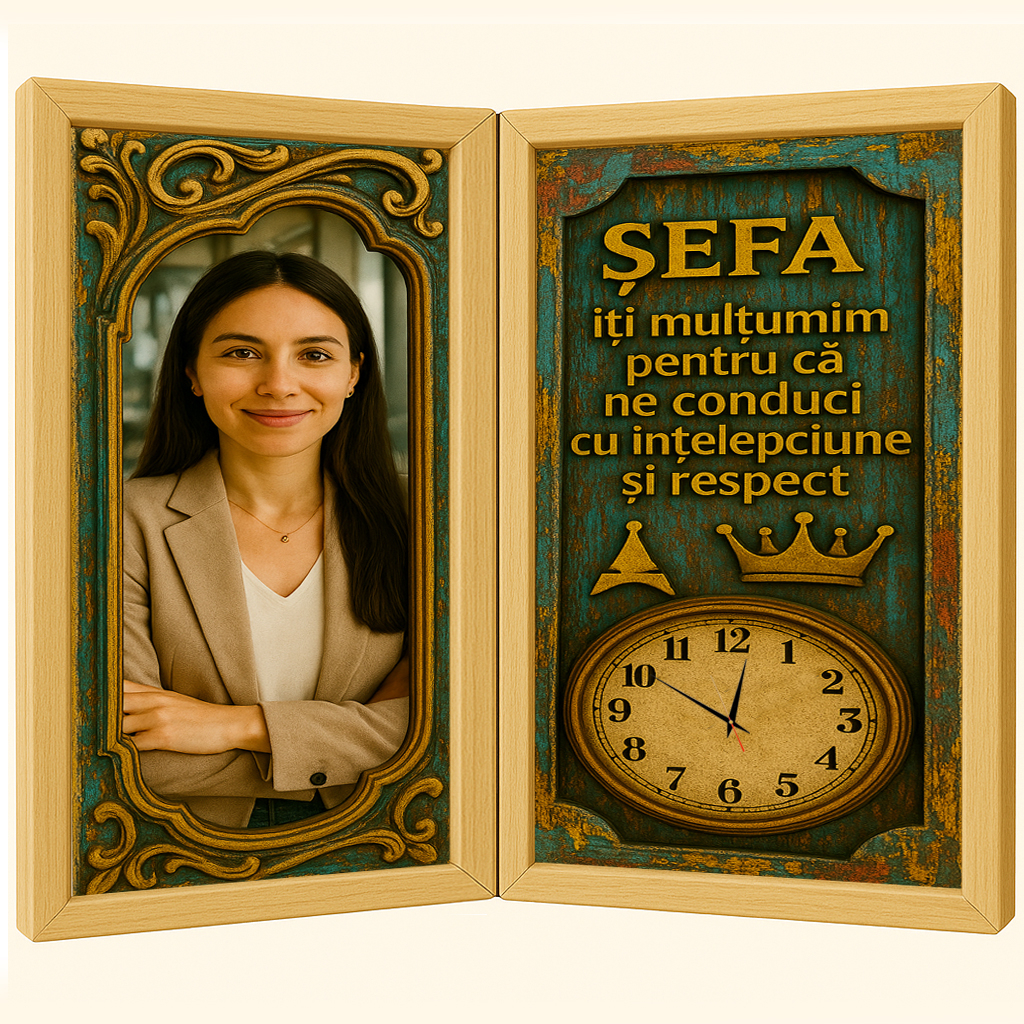 Tabloul tip carte cu ceas funcțional este mai mult decât un cadou – este o dovadă de apreciere profundă pentru o șefă care a lăsat o amprentă umană, nu doar profesională.