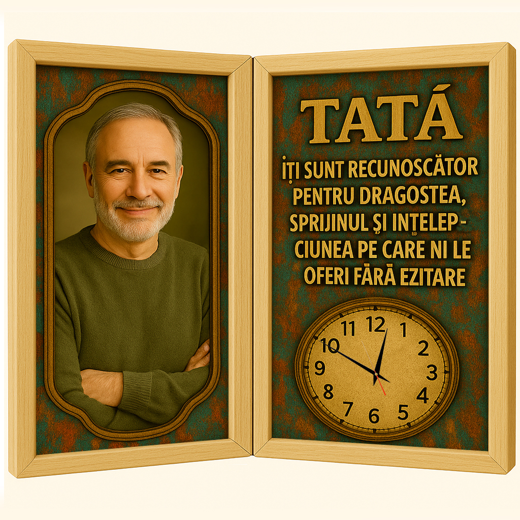 Tabloul tip carte cu ceas este mai mult decât un cadou – este o amintire vizuală a respectului și iubirii față de un tată care a fost erou tăcut, model și sprijin.