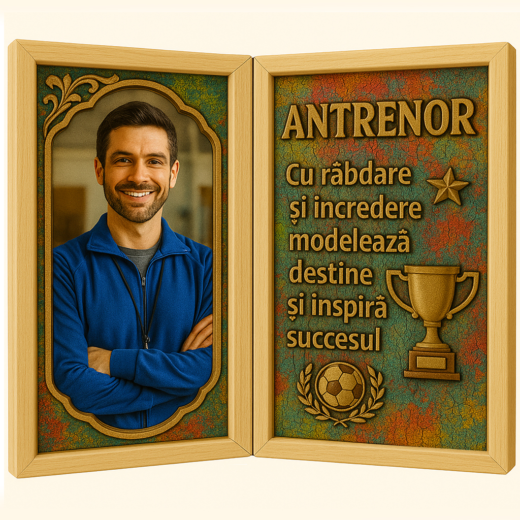 Acest tablou tip carte nu este doar un cadou – este un semn de prețuire pentru omul care a format caractere, nu doar sportivi. Cu un design deosebit, greutate simbolică și detalii lucrate manual, acest dar capătă valoare personală și emoțională. Este o amintire care inspiră și onorează o misiune îndeplinită cu pasiune.