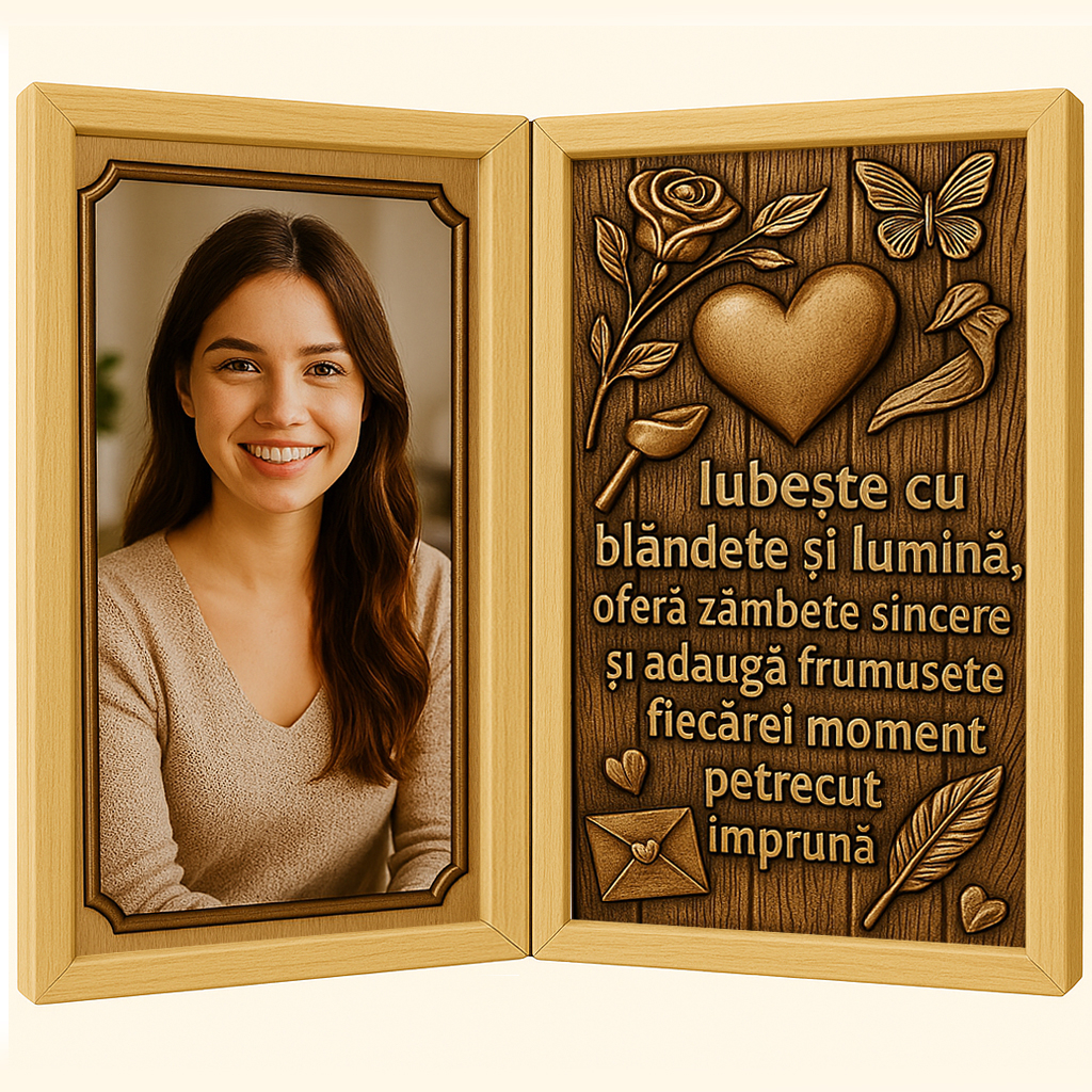 Tablou Personalizat din Lemn Tip Carte – Cadou Inedit pentru Iubită | Text și Poză Personalizabilă