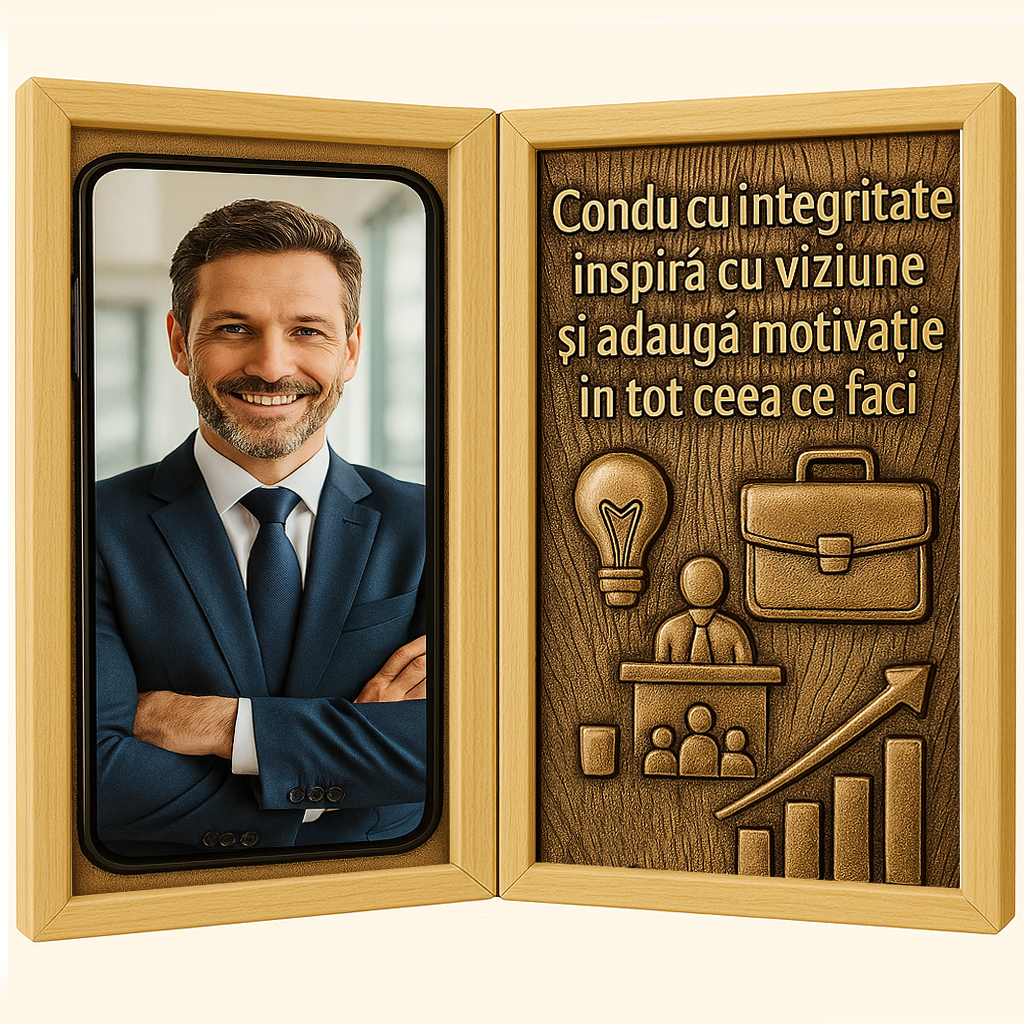 Acest tablou din lemn tip carte nu este doar un obiect decorativ – este o dovadă de apreciere pentru stilul de conducere, implicarea și încrederea oferită de un lider adevărat. Un cadou memorabil, cu impact profesional și emoțional.
