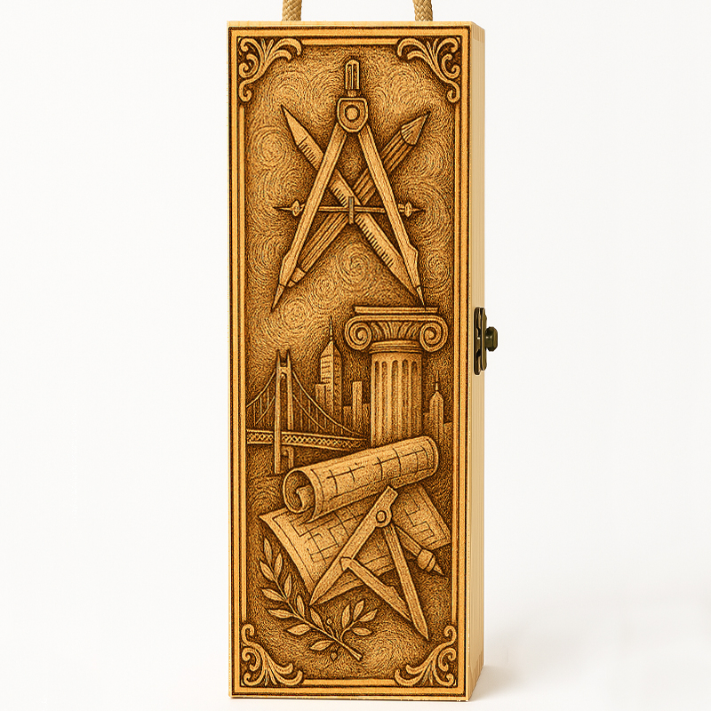 Un cadou elegant și sofisticat, potrivit pentru un arhitect care transformă ideile în artă și spațiul în echilibru. Cutia din lemn de pin, prevăzută cu mâner din sfoară și închidere metalică, impresionează prin rafinament, atenție la detalii și o prezentare de lux, ideală pentru o persoană cu viziune și bun gust.