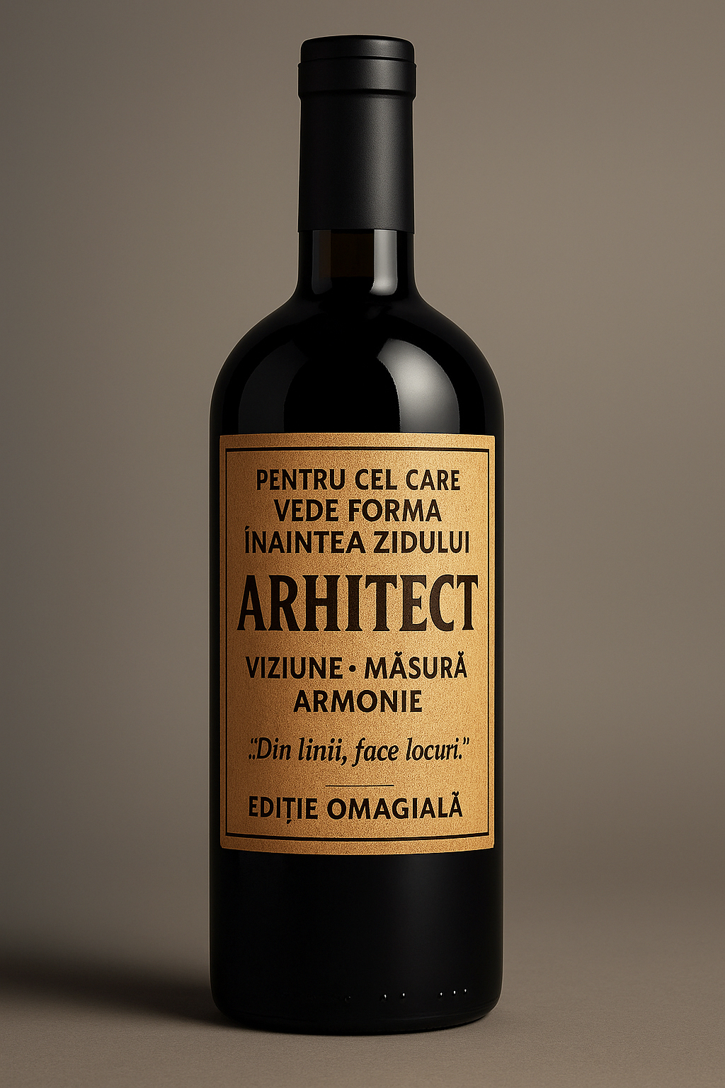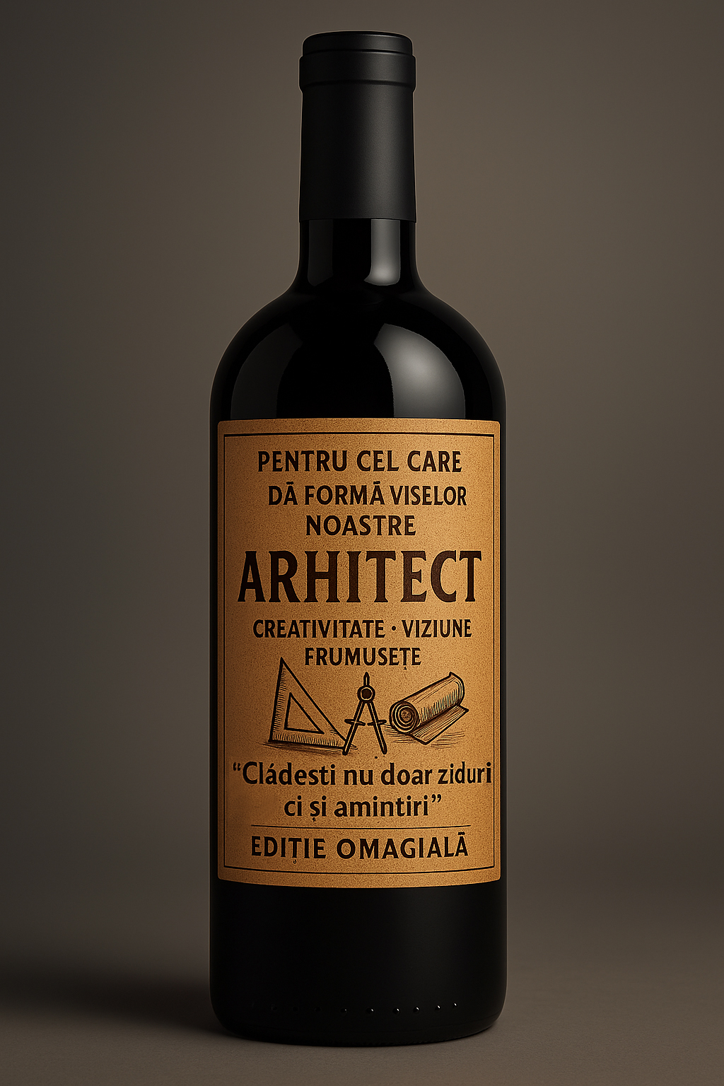 Interiorul impresionează prin detalii fine și un ceas funcțional, simbol al rigurozității și al valorii timpului în creație. Setul conține două sticle de vin a 750 ml, fiecare cu etichetă personalizată, iar textele din interior pot fi adaptate pentru a transmite un mesaj personal de recunoaștere, admirație sau felicitare.