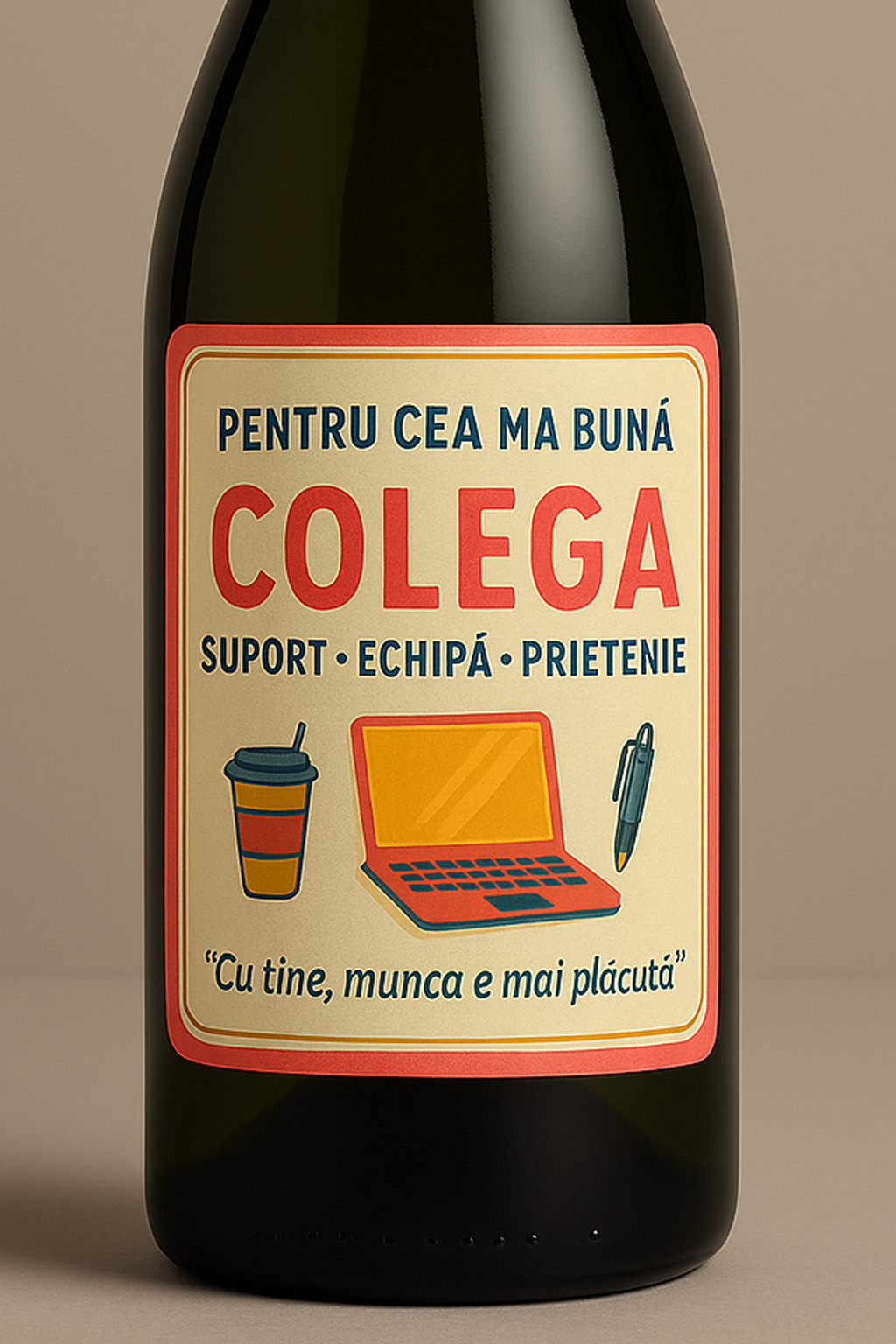 Interiorul, realizat cu atenție la detalii, include un ceas funcțional, simbol al timpului petrecut împreună în colaborare și al momentelor importante de la locul de muncă. Setul conține două sticle de vin a 750 ml, fiecare cu etichetă personalizată, iar textele din interior pot fi adaptate pentru un mesaj elegant și potrivit contextului.