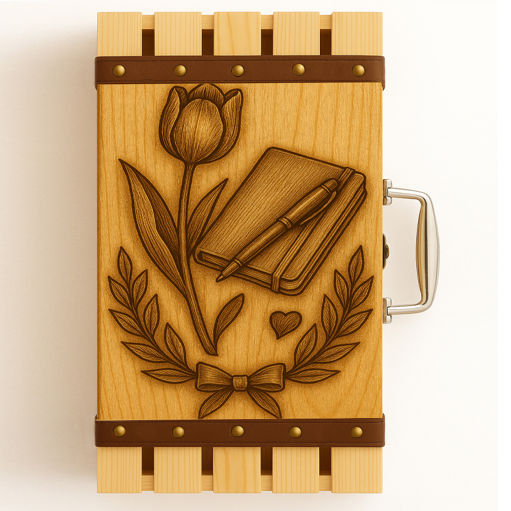 Un cadou elegant, potrivit pentru o colegă care se remarcă prin profesionalism, bun gust și rafinament. Cutia din lemn de pin tip cufăr, cu inserții din piele și închidere metalică, impresionează prin designul echilibrat și o prezentare de lux, ideală pentru a exprima apreciere și recunoștință într-un mod distins.
