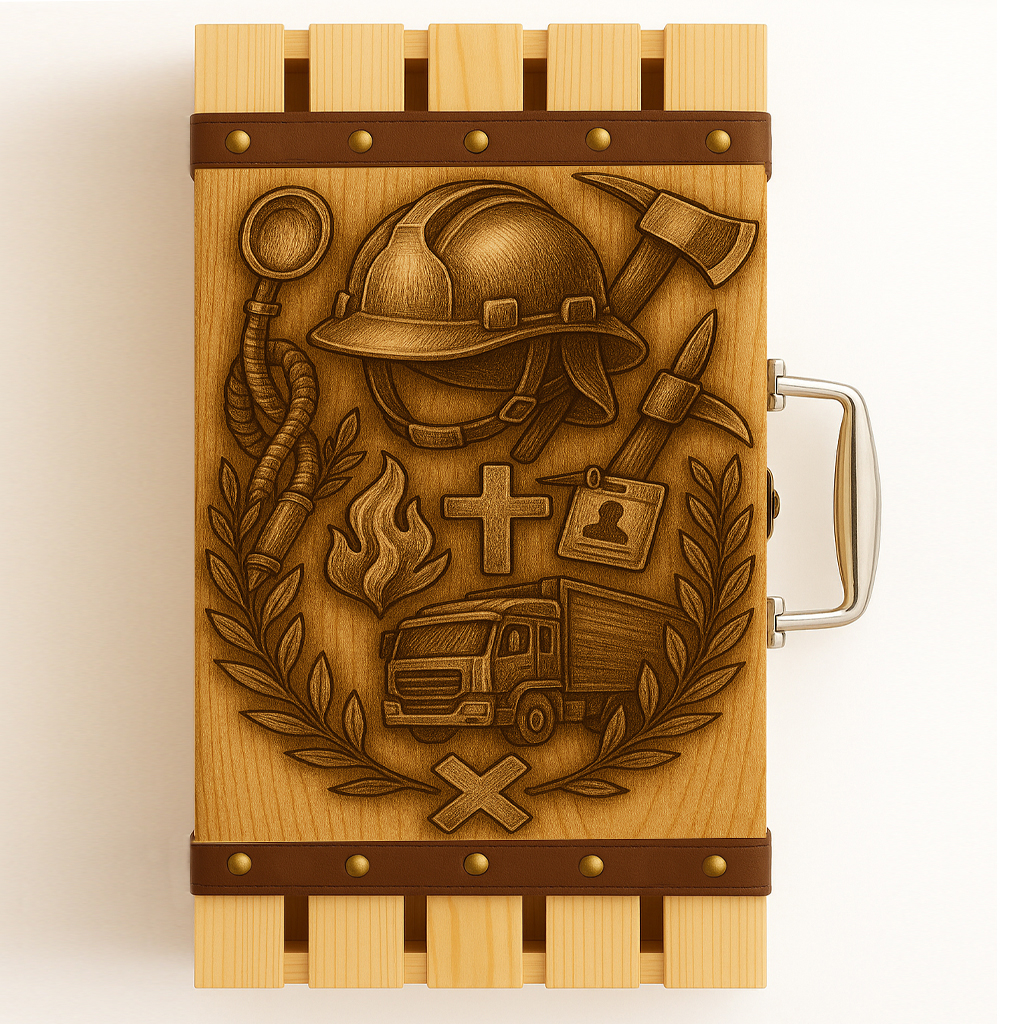 Un cadou care exprimă respectul și recunoștința față de o profesie definită de curaj și devotament. Cutia din lemn de pin tip cufăr, cu inserții din piele și închidere metalică, se remarcă prin eleganță, detalii impecabile și o prezentare de lux. Este un dar potrivit pentru un pompier care a demonstrat dedicare, spirit de echipă și puterea de a proteja vieți.