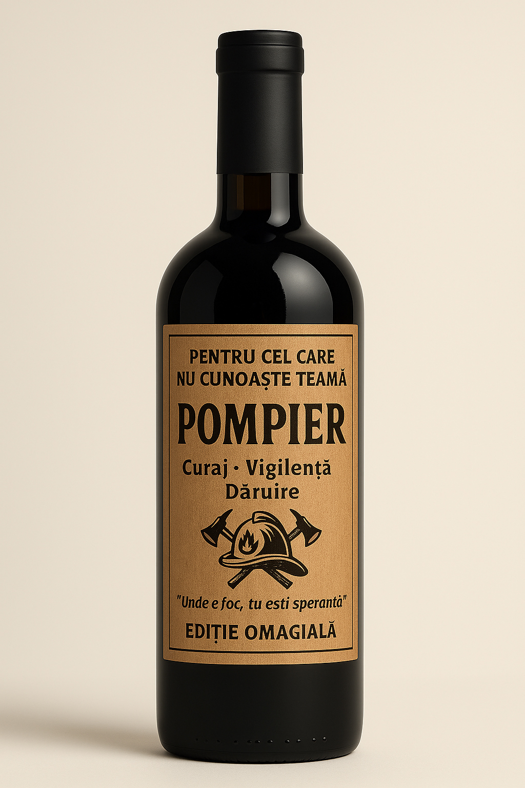 Interiorul, realizat cu atenție la detaliu, este completat de un ceas funcțional, simbol al fiecărui moment de intervenție și al timpului dedicat celorlalți. Setul conține două sticle de vin a 750 ml, fiecare cu etichetă personalizată, iar textele din interior pot fi adaptate pentru un mesaj solemn, de apreciere și onoare.