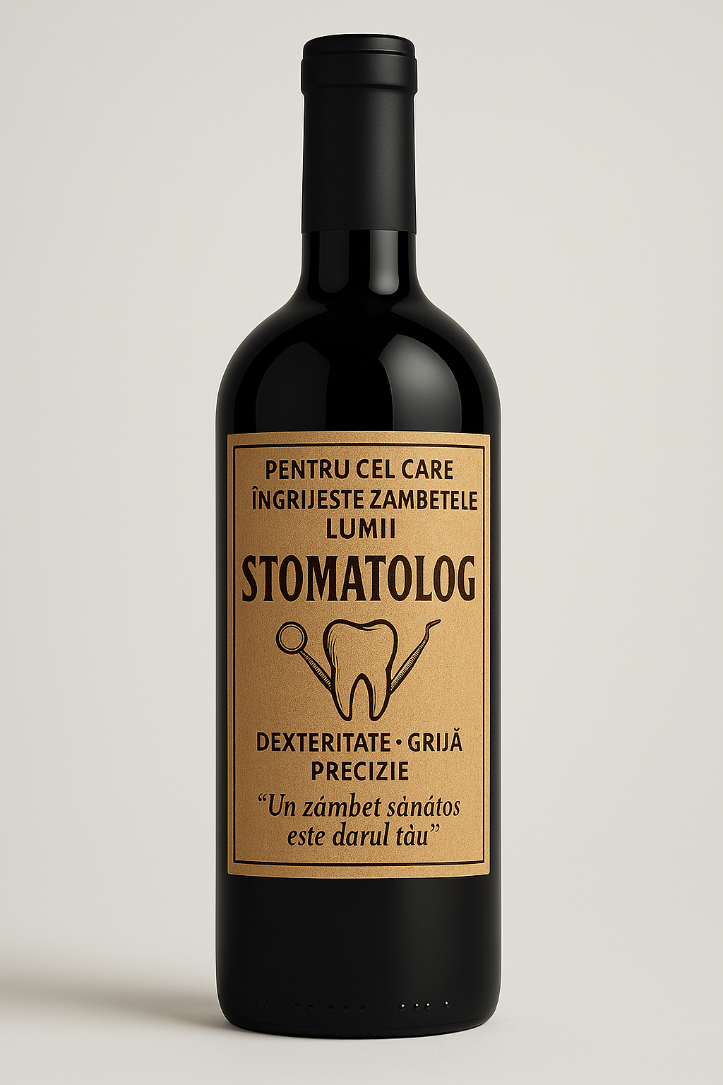 Cutie din lemn de pin cu vin personalizat – cadou de lux pentru stomatolog
