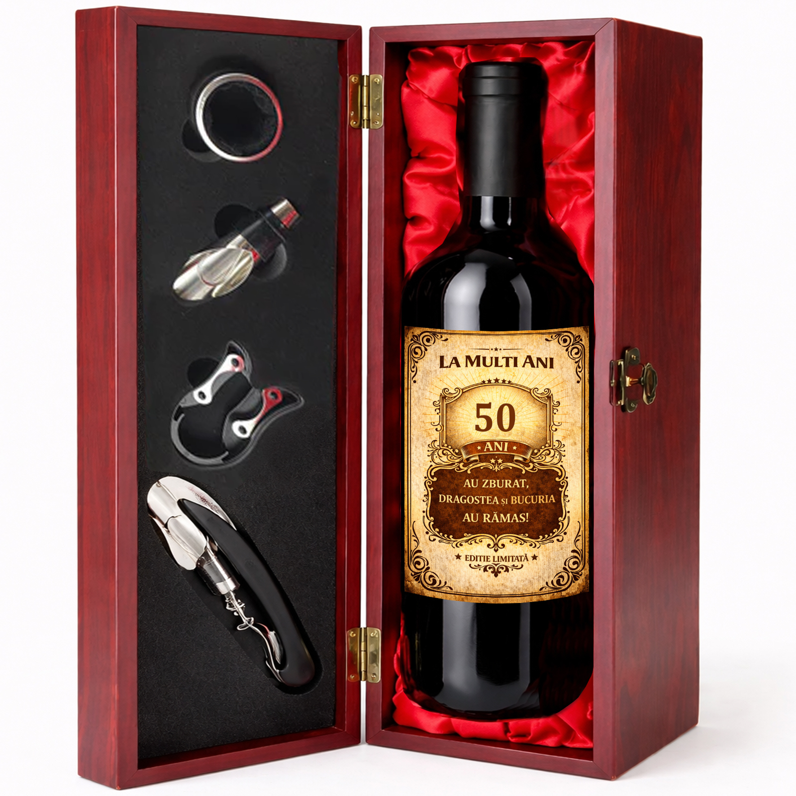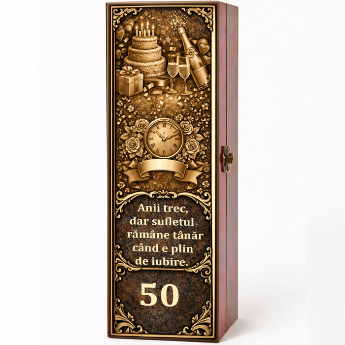 Alegere inspirată. O aniversare merită marcată printr-un cadou care să transmită emoție, atenție și bun gust. Acest set reunește toate aceste calități într-o prezentare elegantă și personalizabilă, potrivită pentru a transforma un moment frumos într-o amintire de durată. Posibilitatea de a personaliza atât vinul, cât și cutia face ca produsul să fie unic, creat special pentru sărbătorit și pentru ocazia celebrată.