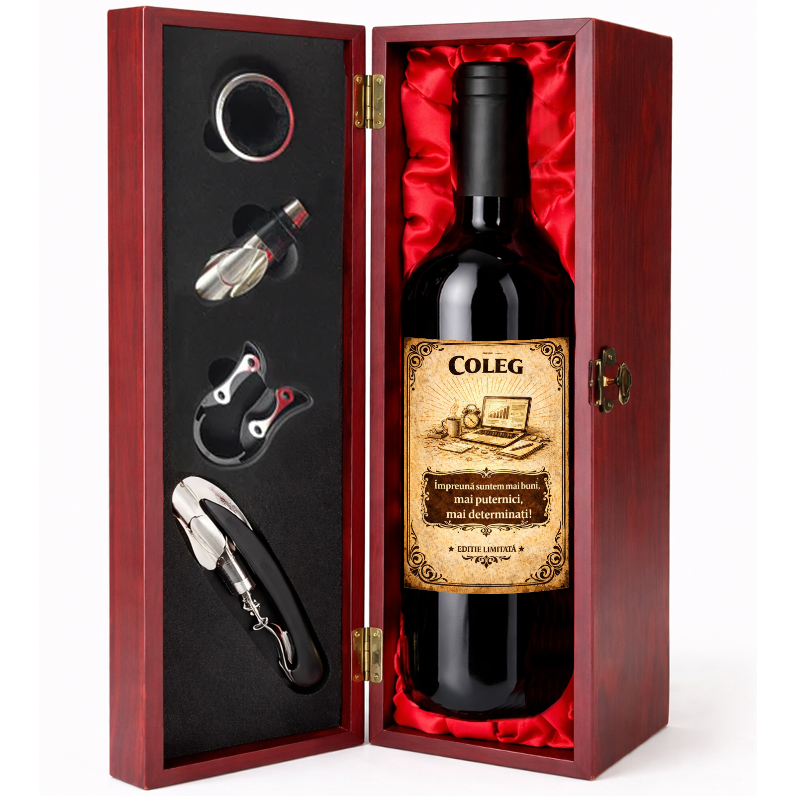 Alegere potrivită. Un cadou pentru coleg trebuie să fie elegant, personal și potrivit contextului. Acest set reunește toate aceste calități într-o prezentare premium, ideală pentru a transforma un gest simplu într-o amintire frumoasă. Posibilitatea de a personaliza atât vinul, cât și cutia face ca produsul să fie unic, creat special pentru a transmite apreciere într-un mod sincer și memorabil.