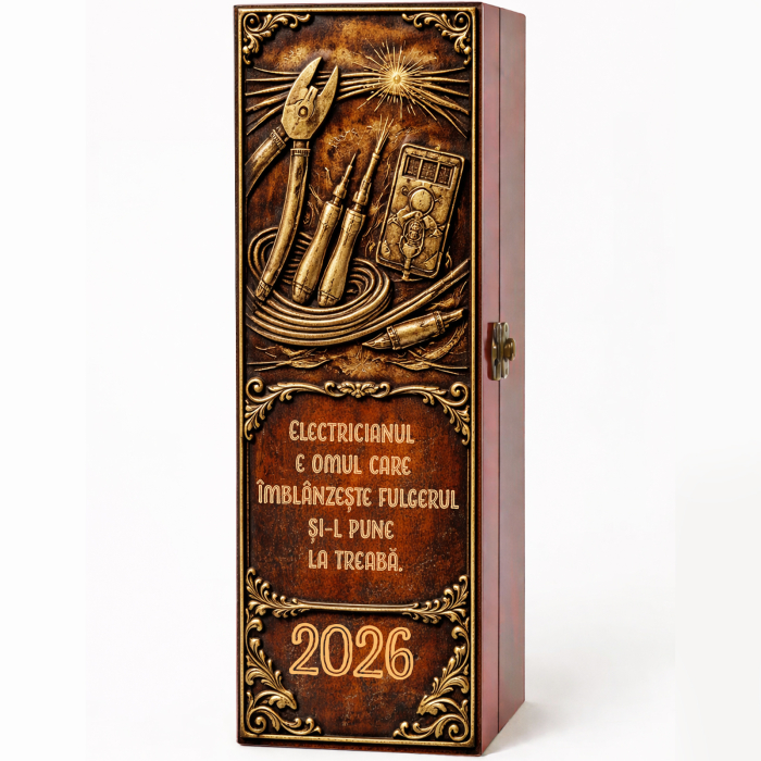 Oferă un cadou deosebit unui electrician care merită apreciat pentru pricepere, seriozitate și munca bine făcută. Această cutie premium cu vin personalizat este alegerea ideală atunci când vrei să surprinzi prin eleganță, originalitate și atenția acordată fiecărui detaliu.