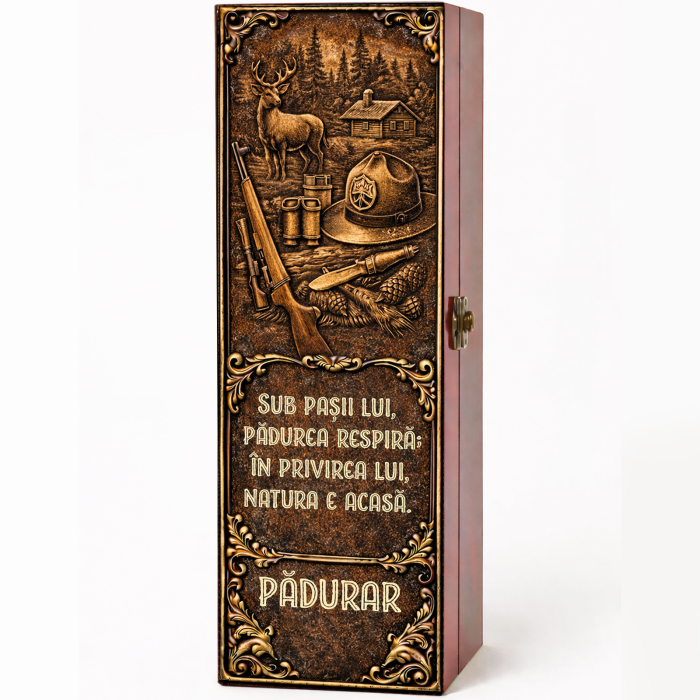 Cadou deosebit. Oferă un dar elegant și memorabil unui pădurar care merită apreciere pentru devotament, responsabilitate și legătura sa aparte cu natura. Această cutie cadou cu vin personalizat este alegerea ideală atunci când vrei să surprinzi prin rafinament, utilitate și un mesaj special, transformând un simplu cadou într-o amintire de neuitat.