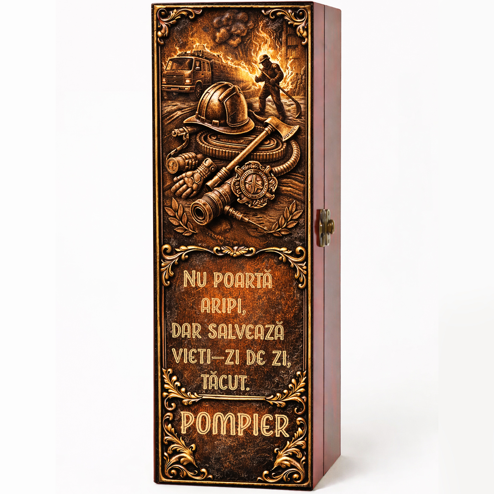 Oferă un cadou deosebit unui pompier care merită respect, apreciere și admirație pentru curajul, devotamentul și munca sa. Această cutie cadou cu vin personalizat este alegerea ideală atunci când vrei să surprinzi prin eleganță, originalitate și un mesaj cu adevărat special. Este un produs creat pentru a transforma un simplu cadou într-o amintire memorabilă.